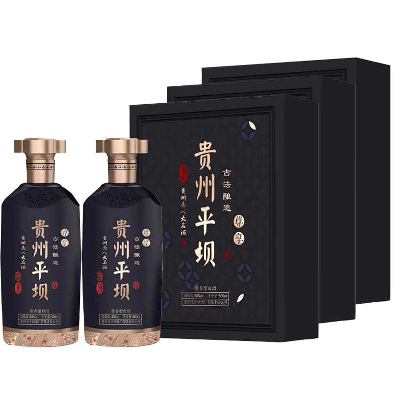 贵州平坝酒 尊享版53度 酱香型白酒 纯粮酒 500ml*2瓶*3盒 整箱装
