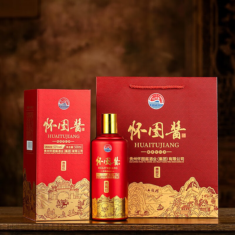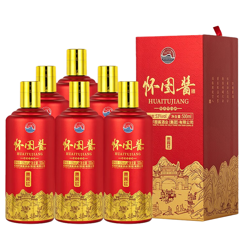 怀图酱酒 贵宾红 茅台镇 酱香型白酒 53度高粱酒送礼整箱 500ml*6瓶
