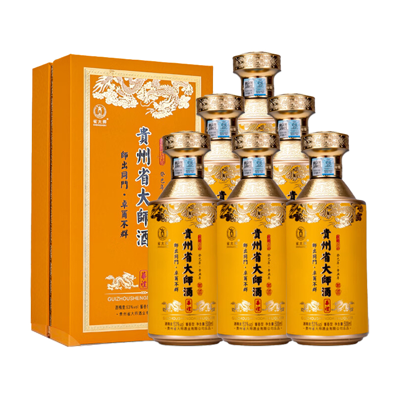 贵州省大师酒 华礼 53度 酱香型白酒 标准酱香茅台镇纯粮食酿造老酒 500ml*6瓶 整箱